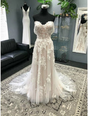 Wholesa Beach Formal Wedding Dresses A-Line Sweetheart Short Sleeve Court Train Lace Bridal Gowns With Pleats Appliques