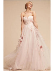 Wholesa Beach Wedding Dresses Princess Sweetheart Sleeveless Sweep / Brush Train Tulle Bridal Gowns With Appliques Flower