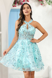 CNTNZ DRESS Fashion Halter Neck Sleeveless See-through Sequins Applique Sparkle Mini Dress Hot Sale Homecoming Dress - US 2 / UK 6 / EU 32