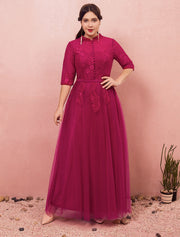 Wholesa A-Line Chinese Style Plus Size Engagement Formal Evening Dress High Neck Half Sleeve Floor Length Lace with Buttons