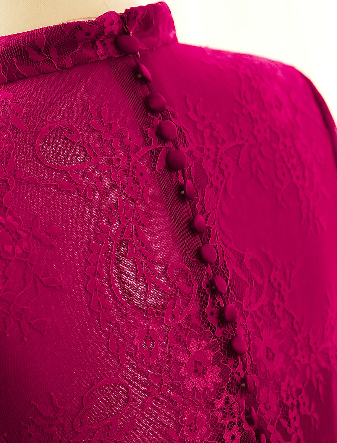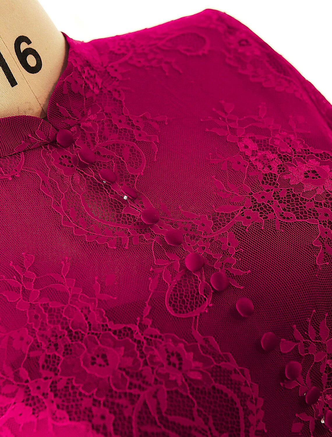 Wholesa A-Line Chinese Style Plus Size Engagement Formal Evening Dress High Neck Half Sleeve Floor Length Lace with Buttons - US 2 / UK 6 / EU 32