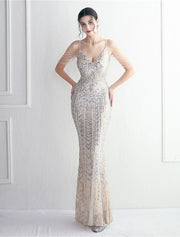 Wholesa Mermaid / Trumpet Evening Gown Sparkle & Shine Dress Formal Wedding Guest Floor Length Short Sleeve Spaghetti Strap Polyester with Beading Sequin