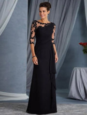 Wholesa Sheath / Column Evening Gown Elegant Dress Wedding Guest Floor Length Half Sleeve Jewel Neck Lace with Appliques
