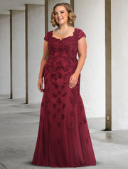 wholesale A-Line Mother of the Bride Dress Luxurious Plus Size Elegant Scoop Neck Floor Length Lace Tulle Sleeveless with Appliques - US 2 / UK 6 / EU 32